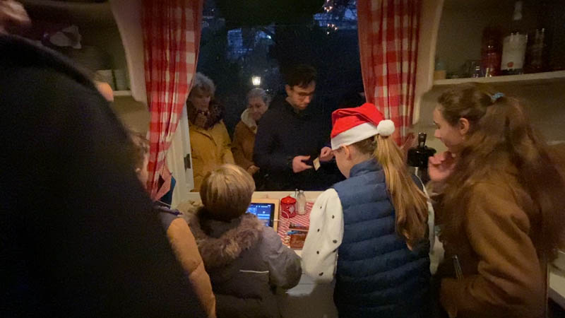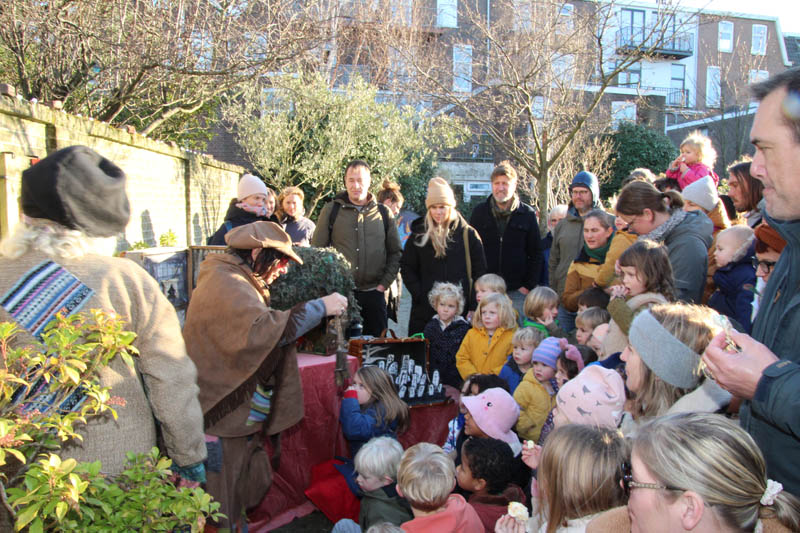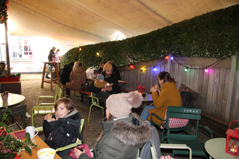 In de toegangspoort tot de tuin tonen en verkopen buurtgenoten hun eigengemaakte waar. De tuin is weer in kerstsfeer gebracht, er klinkt muziek, er branden lichtjes en op diverse plekken is stevig en zalig wintereten te verkrijgen, zoals de worstenkraam, vegafood, soep en verse flammkuchen!