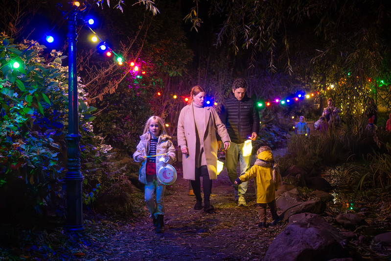 Het verhaal van Sint Maarten wordt verteld in een sprookjesachtige decor. Voor deze ene avond wordt de stadstuin prachtig verlicht met lantaarns en fakkels.